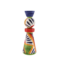 Il portacandela in ceramica rappresenta una perfetta armonia tra tradizione e innovazione. Realizzato interamente in ceramica, è il pregevole risultato del meticoloso lavoro artigianale che rende ogni pezzo unico. La grafica decorativa è applicata con cura, e successivamente, mani esperte di maestri siciliani arricchiscono ogni portacandela con dettagli dipinti a pennello, conferendo un tocco di autenticità e fascino senza tempo. Questo portacandela, con il suo design raffinato e ricercato, rappresenta un oggetto d`arredo ideale per impreziosire l`atmosfera degli ambienti più eleganti.